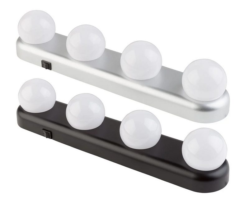 Dale a tu baño un aire de camerino de estrella con esta regleta de bombillas de plástico en mate resistente. Es de luces LED y reproduce una luz que respeta los colores naturales, con una iluminación homogénea y sin sombras perfecta para tareas como el maquillaje. Funciona con pilas para colocar donde se necesita, y se compone de 16 leds de bajo consumo y una larga duración. Las pilas están incluidas y la regleta tiene un interruptor de encendido y apagado en la carcasa. Mide 30,5 x 6 x 6,4 cm. y hay dos colores disponibles en Lidl: plateado y negro. Tiene un precio de 4,99€.