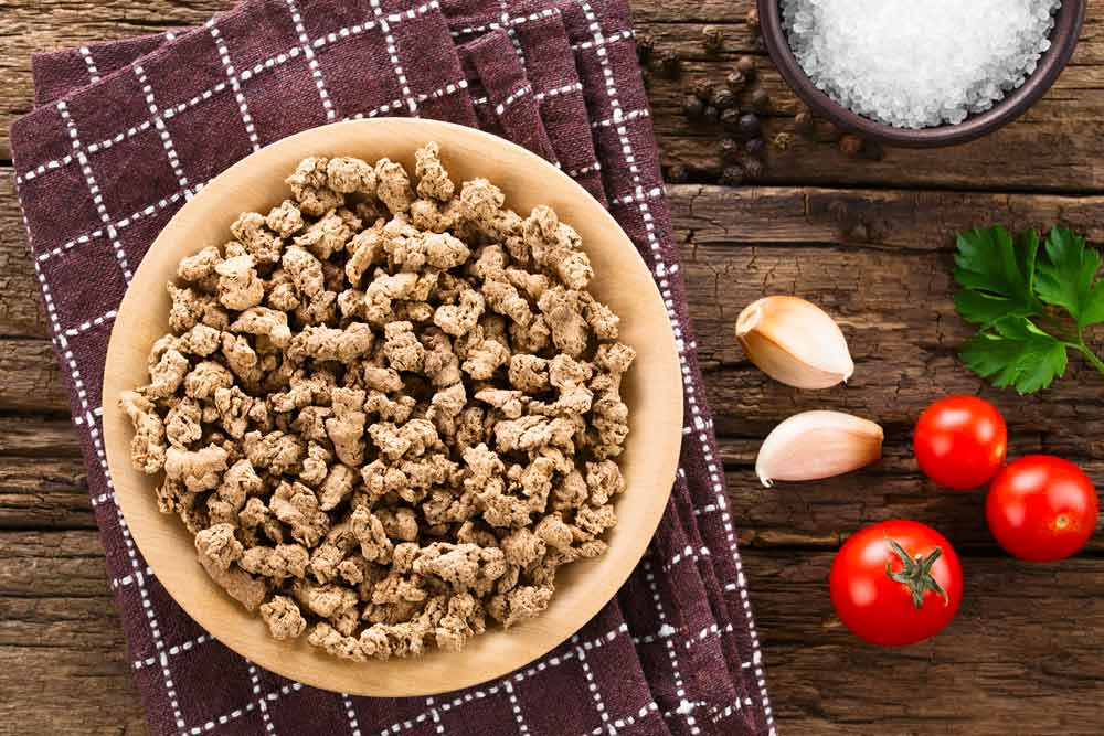 Aquí es donde reside el magia de este plato. La soja texturizada es uno de los productos que más utilizan los veganos como sustitutivo de la carne molida, por ello, recrear la receta original utilizaremos la soja. Cuando tenemos la cebolla pochada, añadimos la soja sin hidratarla previamente, para que se mezclen bien los sabores y tenga la textura tan característica de la carne picada.