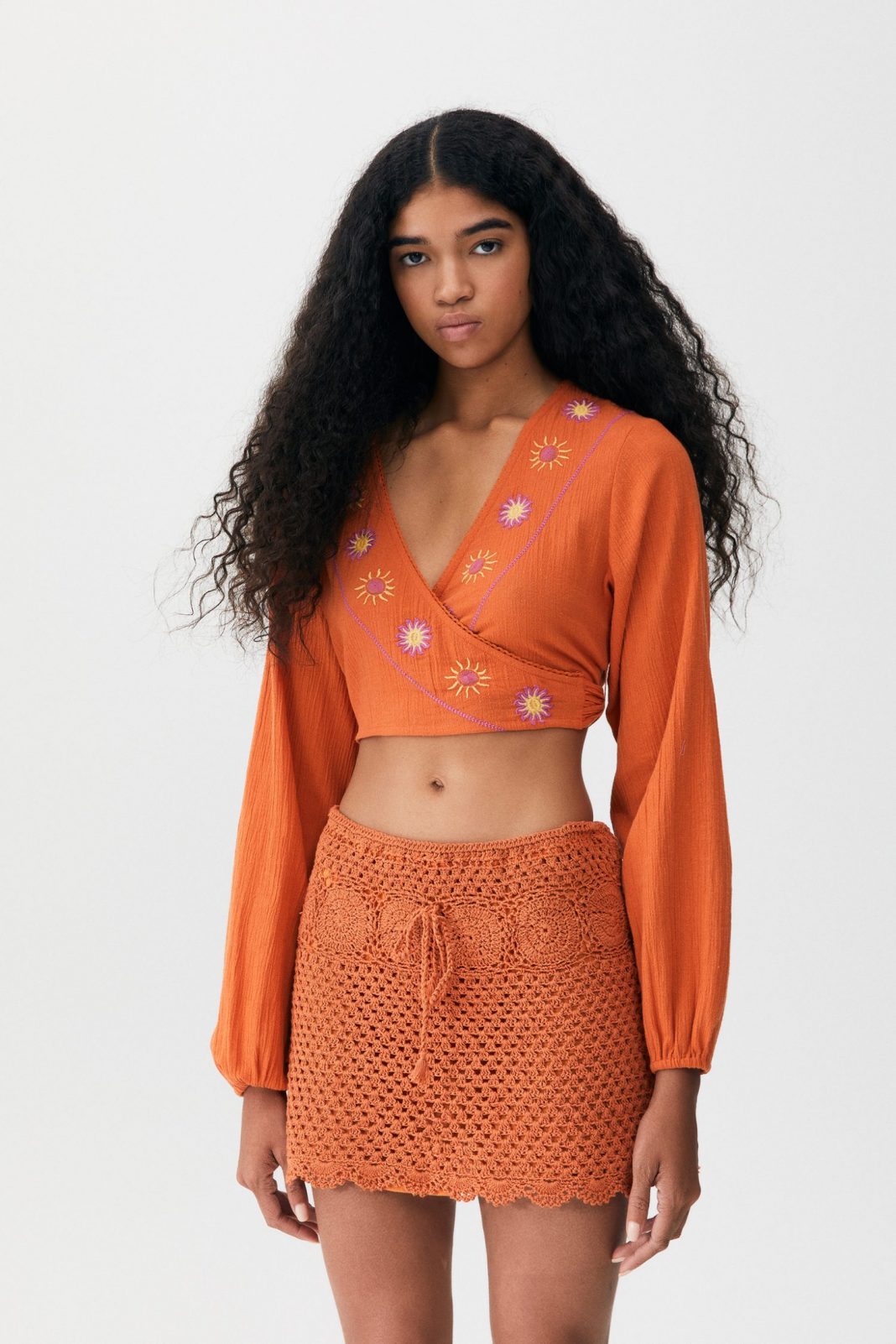 Si hay un tejido considerado como el rey del verano es el crochet. A eso, además, hay que sumarle que esta falda de Pull&Bear está diseñada en el color naanja más vibrante de la temporada. Con acabado de ondas y detalle de lazo en la parte frontal, te la puedes llevar a casa por solo 22,99 euros. Además, la podrás combinar con el resto de tus prendas.