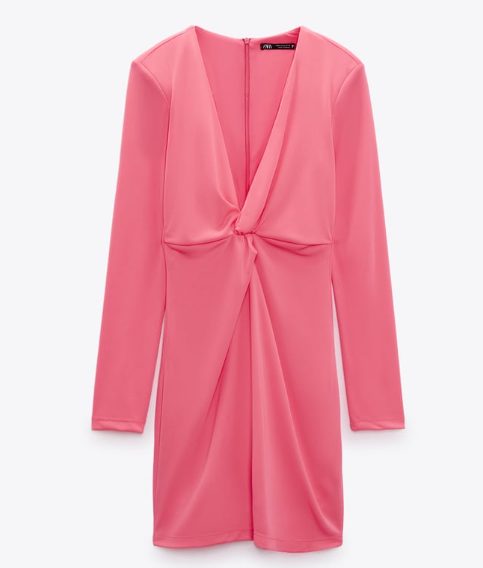 Si ha habido un color que ha triunfado durante el verano y que promete continuar haciéndolo la próxima temporada es el rosa. Así lo demuestan desde Zara con este bonito vestido de corte mini, con detalle de nudo frontal, que ahora puedes conseguir por tan solo 12,99 euros. Su precio anterior era de 29,95, por lo que es una gran oportunidad.