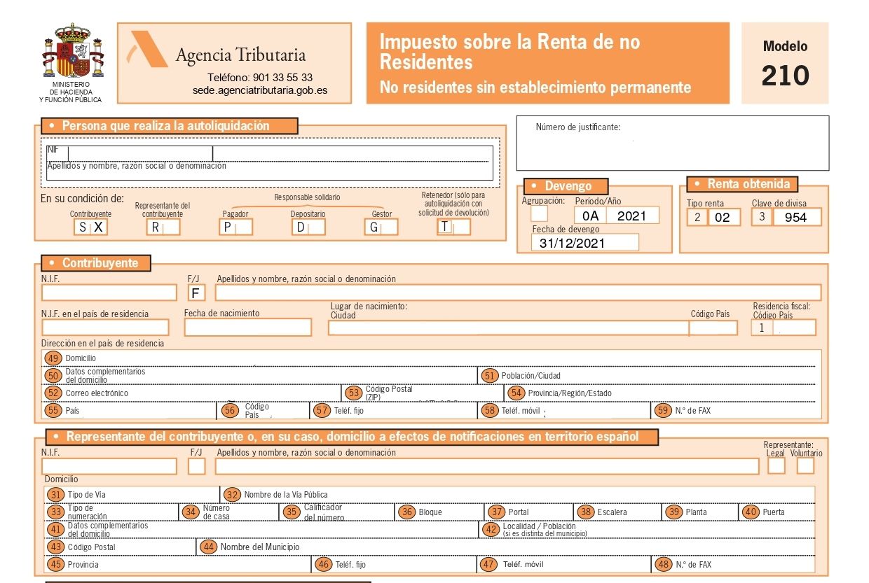 En ambos casos, el impuesto se autoliquida a través del Modelo 210, formulario que aglutina las declaraciones de los contribuyentes no residentes.