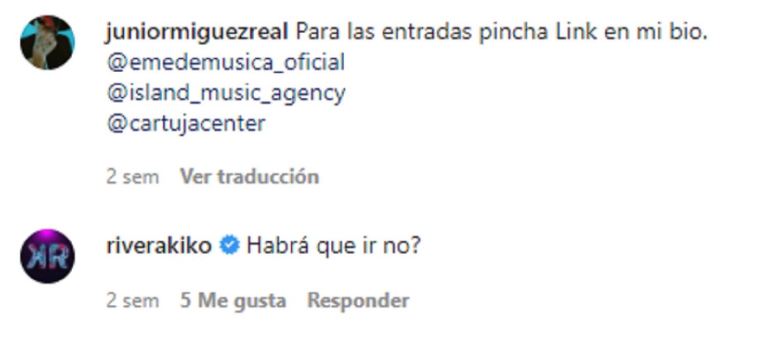 Con 14.8 mil seguidores, Junior sigue creciendo en la esfera social para llegar a más personas y, así, hacer crecer su música. Sería un sueño para él regresar a “Upa dance” y tener, como ya ha tenido al salvarse del trágico diagnóstico del cáncer, una segunda oportunidad. Por el hecho de seguir vivo, Míguez alberga muchas razones para seguir luchando y buscar su camino. Mientras algunas puertas se cierran, seguramente otras se abrirán. Un indicio de ello es lo que pasó hace tan solo 2 semanas, cuando publicó un anuncio donde expresaba que ya estaban a la venta las entradas para su concierto en el Cartuja Center de Sevilla. Kiko Rivera exclamó en un comentario: “¿Habría que ir no?”. De su encuentro podría salir una posible colaboración que haga subir su nuevo de seguidores como la espuma, un efecto que solo sabe causar el hijo de Isabel Pantoja.