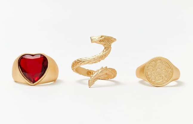 Un poco en la misma línea de los anteriores colgantes basados en La casa del dragón van también estos cuidados anillos, que seguramente gustarán a los seguidores de la serie. En total son tres, de aspectos realmente épicos, y que cuestan lo mismo que el collar anterior: 9,99 euros.