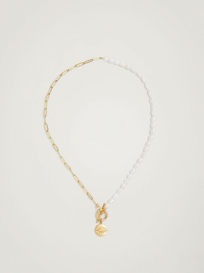 Pasarte horas y horas buceando por Internet para encontrar los collares, pendientes o anillos que se adapten a nuestros gustos, puede ser una tarea realmente complicada. Para evitar acabar volviéndote loca y descartando la idea de renovar tu joyero, siempre podemos recurrir a la vieja confiable: Parfois. Una de las tiendas que siempre que entramos queremos comprar toda su colección hasta quedarnos en números rojos en la cuenta. Por eso, te vamos a enseñar este collar de acero con perlas que será uno de los complementos que no querrás quitar de cuello.