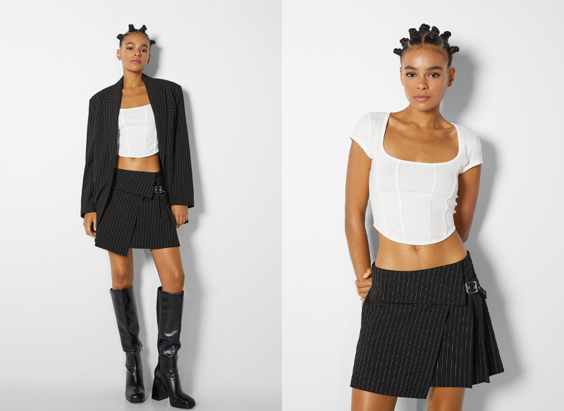 Esta falda midi print raya diplomática es la falda de Bershka que puedes conjuntar con todo, siendo una prenda muy versátil que podrás utilizar con todo tipo de prendas superiores con un gran resultado final.