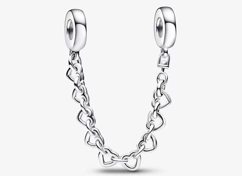 Entre las novedades que ha decidido lanzar Pandora se encuentra esta cadena de seguridad Corazones Enlazados, la cual tiene una longitud de 5 cm y está pensada para ser utilizada con sus pulseras, garantizando así que no se puedan perder.