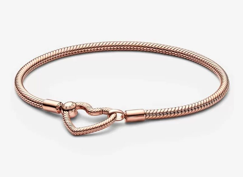 En Pandora puedes encontrar piezas de joyería tan exclusivas como esta pulsera de cadena de serpiente con cierre corazón, un modelo disponible en diferentes tallas y que tiene un precio actual de venta de 169 euros.
