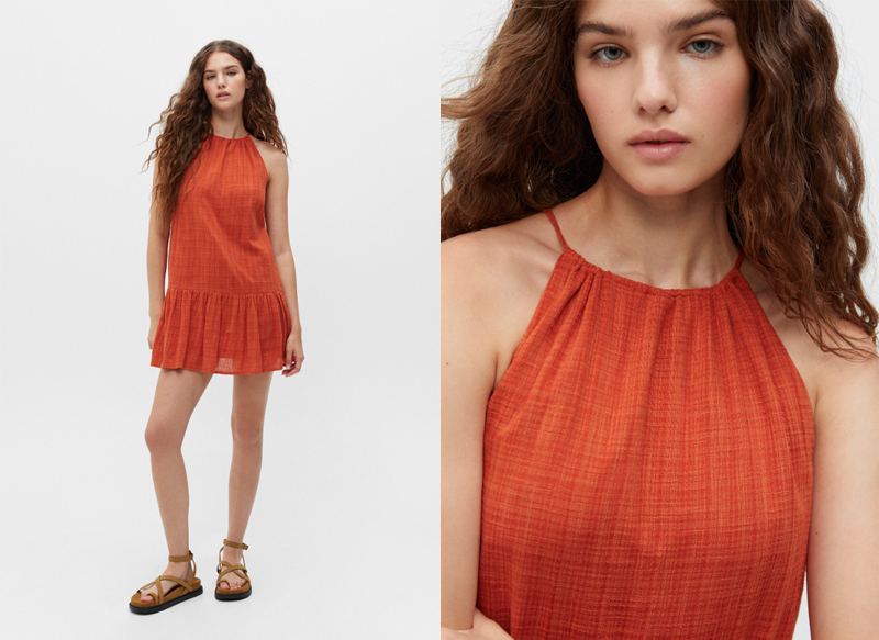 A la venta por 16,09 euros (PVP original: 22,99 euros) este vestido corto halter de Pull&Bear es una gran opción para poder tener en el armario una prenda que se puede utilizar tanto para crear un look casual como uno formal.