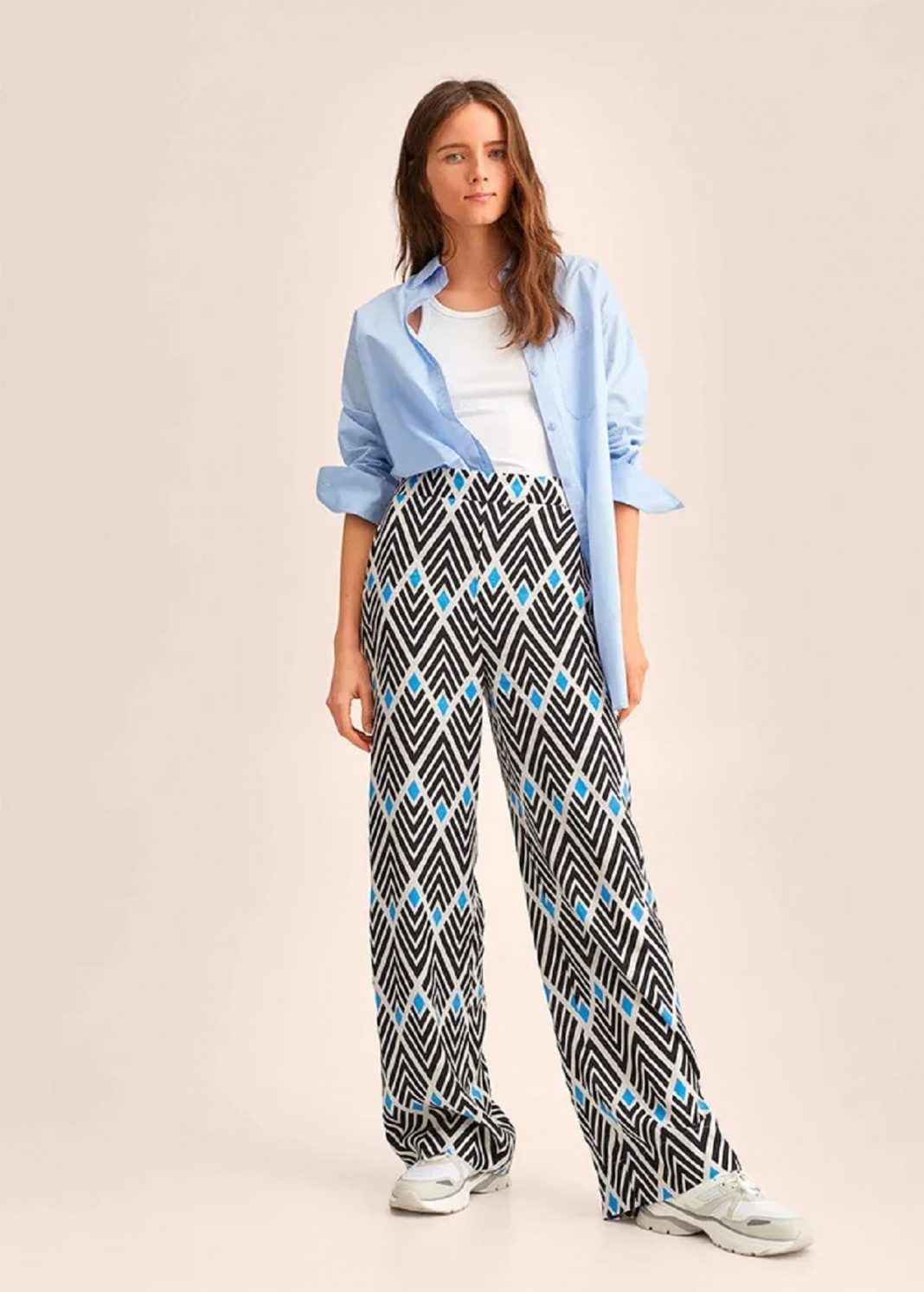 Otro de los puntos a favor que tienen los pantalones anchos es que son ideales para llevar estampados grandes y llamativos, algo que no siempre es la mejor opción cuando llevamos pantalones de corte entubado. El que te presentamos aquí de estampado geométrico puede ser una alternativa magnífica para crear un ‘look’ que dejes en tu guardarropa para esa ocasión especial que llevas tanto esperando. Si sabes combinarlo puedes utilizar en ‘looks’ casuales o para salir de fiesta. Un pantalón de tiro alto que busca estilizar tu figura, al mismo tiempo que te otorga el máximo ‘confort’.
