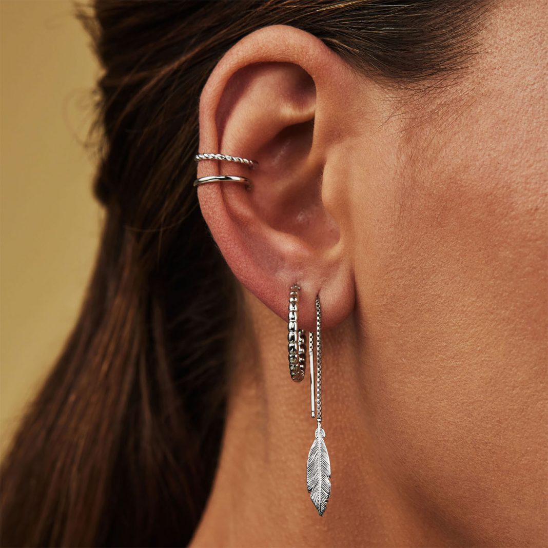 Estos pendientes que están ahora tan de moda los podemos ver tanto en las alfombras rojas como en el ‘streetstyle’. Los ‘ear cuffs’ son unos de los accesorios que más están brillando últimamente, desde que los piercings se pusieron en el foco de atención de las tendencias. Esta moda tan candente en la actualidad de llevar la oreja repleta de pendientes ha ido aumentando poco a poco hasta el punto de que se ha convertido en el talón de Aquiles de varias de las firmas que se dedican día a día a la bisutería, incluso llegando a conquistar la gama más alta de joyería.