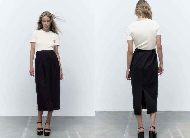 Una última recomendación es este vestido midi combinado de colores blanco y negro, un modelo que en el catálogo actual de Zara se puede encontrar a la venta por un precio de tan solo 25,95 euros.