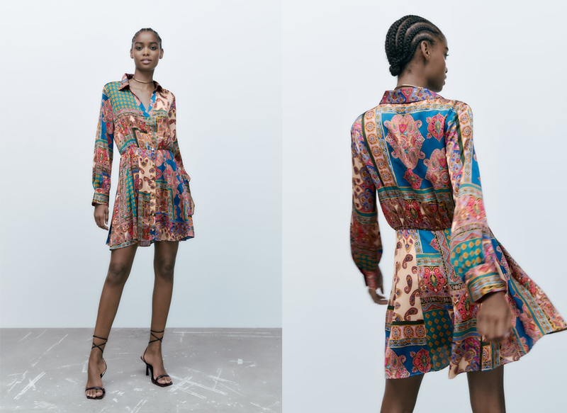 Una de las novedades más interesantes que podemos encontrar en el catálogo de Zara es, sin lugar a dudas, este vestido estampado patchwork. Se trata de un modelo multicolor llamativo que tiene un precio de 35,95 euros.