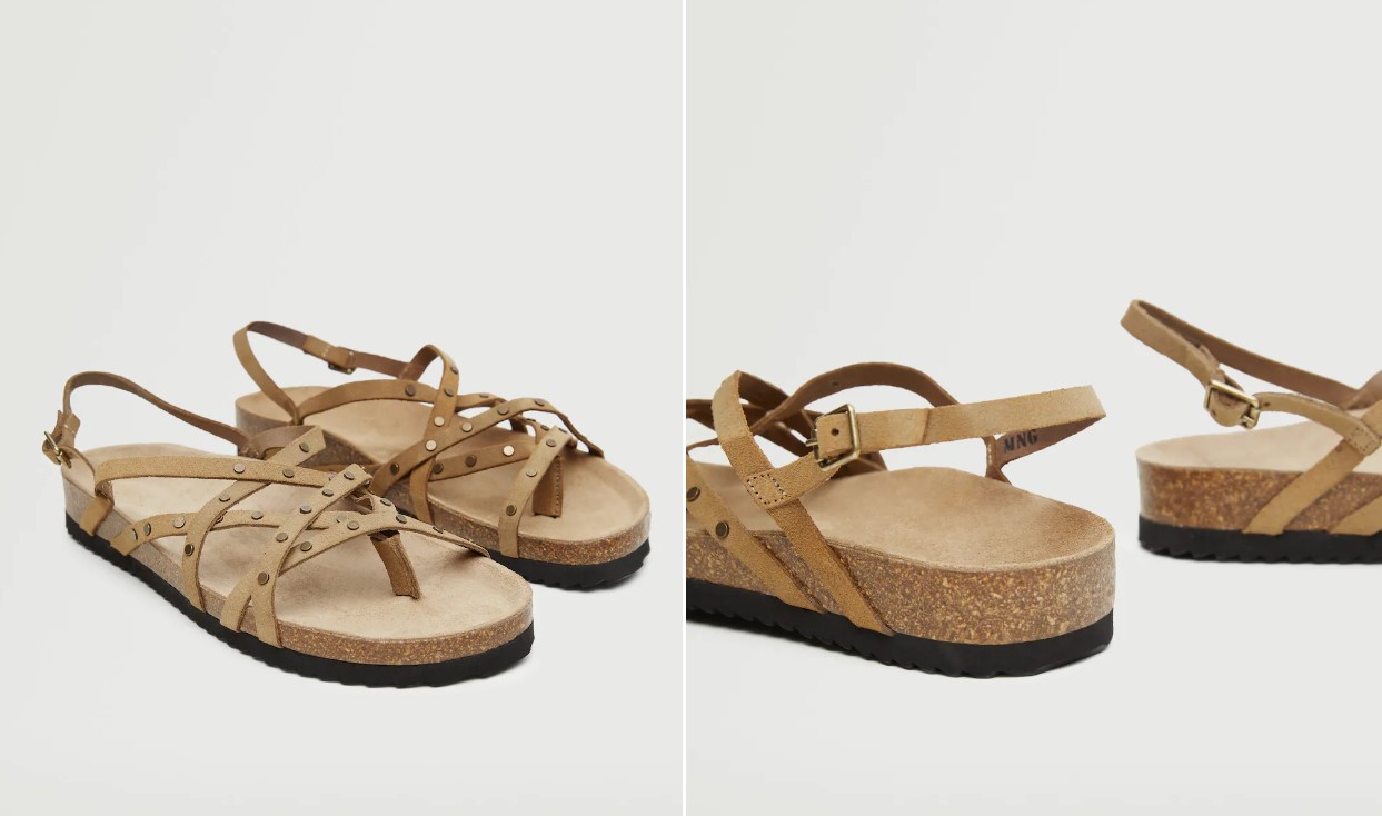 Otra opción que encontramos en Mango Teen son estás sandalia beige de piel con tachuelas. Cuentan con un diseño de tiras, los detalles de tachuelas, punta redonda y cierre de hebillas. Nada se les resiste a estas sandalias, desde un vestido, hasta los pantalones de vestir, lisos o estampados, quedarán igual de bien. Son 15,99 euros lo que nos costarán estas sandalias que serán nuestras mejores aliadas en estos días.