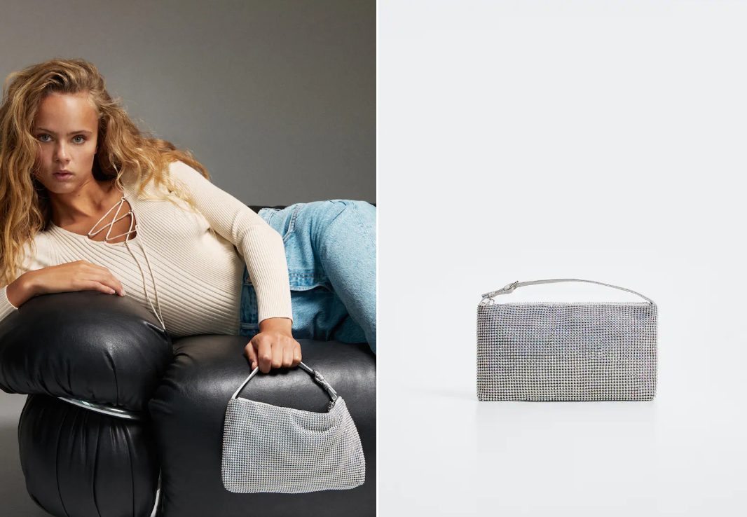 Si buscas un bolso diferente y cargado de estilo, este de Mango también será tu mejor compañero. Con forma rectangular y lleno de cristales, cuenta además con la virtud de combinar con todo tu armario. Además, por su precio, de tan solo 29,99 euros, también te terminará de convencer.
