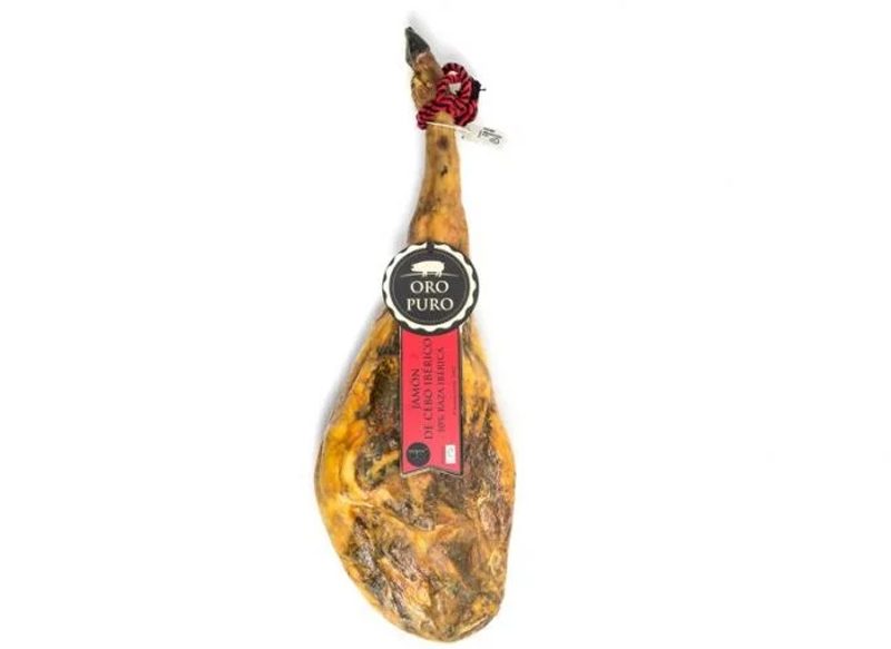 Una alternativa a los anteriores este jamón de cebo ibérico 50% Oro Puro 8,5 a 9 kg, que en este caso se puede comprar por 139,95 euros. Estamos ante un jamón de cebo de alta calidad que requiere de un proceso de curación de 32 a 38 meses en función del tamaño de la pieza.