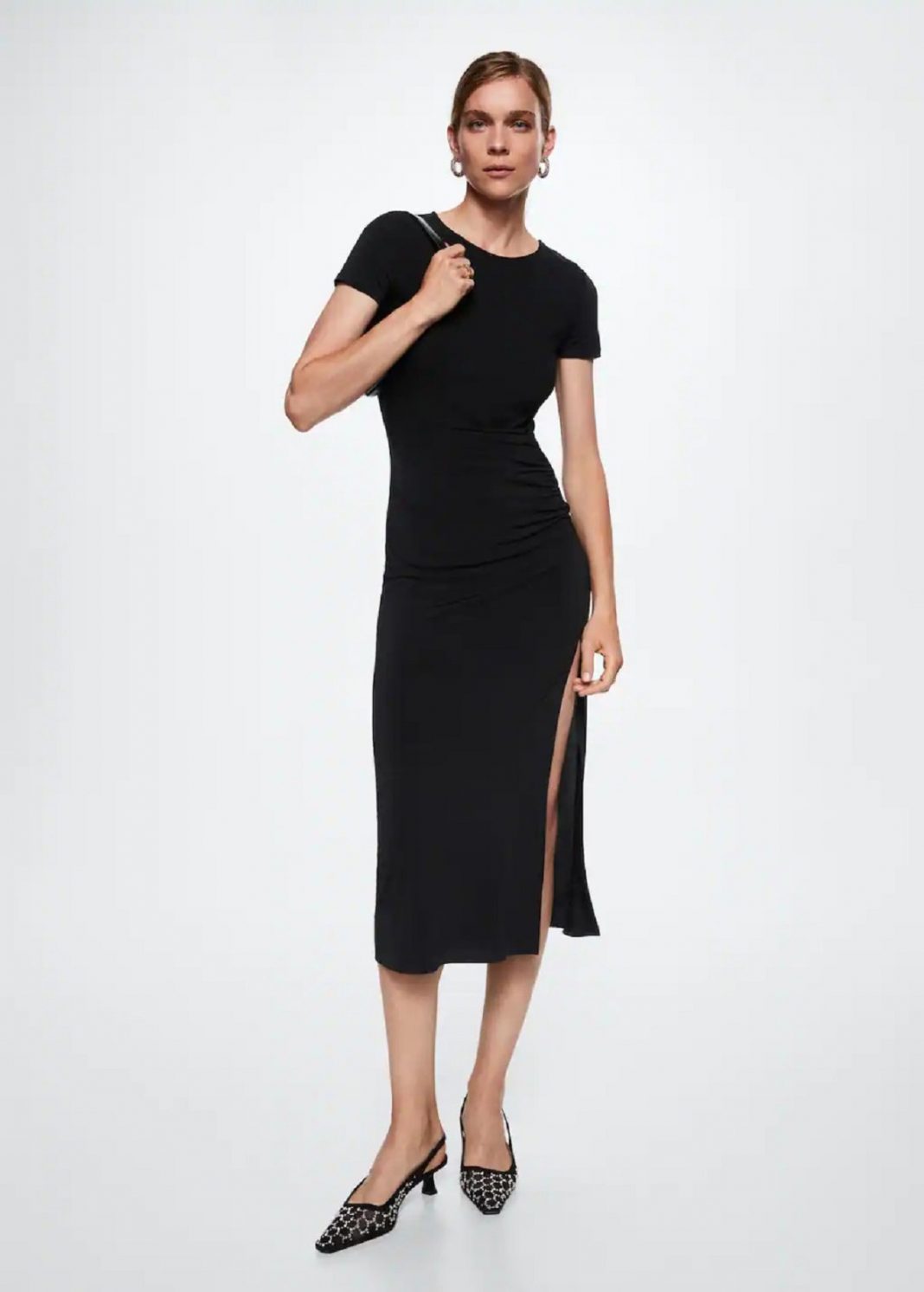 Vuelve la moda del vestidito en la ofi. Este estupendo vestido entallado con abertura es lo más osado, pero acertado si tienes un puesto donde tienes que pasearte para llevar fotocopias y hablar con diferentes clientes o compañeros. Nadie se resistirá a tus encantos ni podrá decirte que no. Pertenece a la colección “Committed”, lo que quiere decir que su proceso de confección es amigable con el medio ambiente.