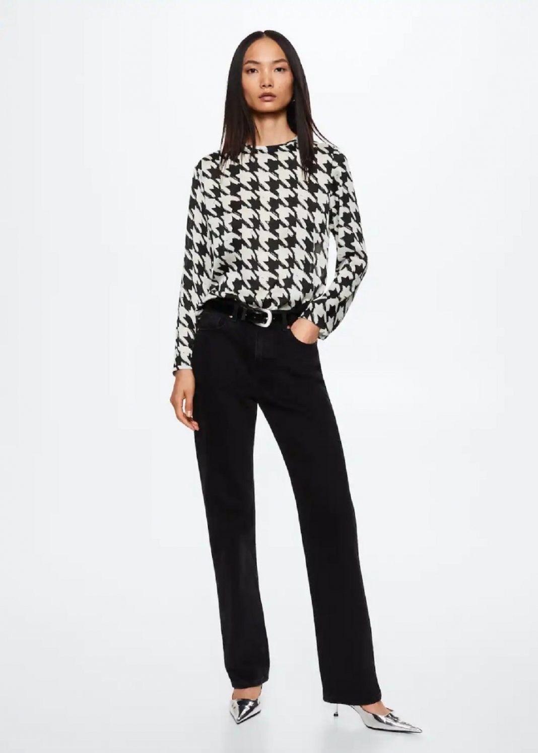Volvemos otra vez al negro y blanco. Esta temporada estamos con todo con las tonalidades más básicas desde el principio de los tiempos. Eso sí, la moda siempre vuelve, pero renovada. Por eso, Mango complemente estos dos colores con la simulación de varias patas de gallo. Sin duda, la inspiración proviene de los lugares más insospechados. Ideal para combinar con pantalones negros. Si quieres darle un toque más casual, ponte una chaqueta de cuero encima y un cinturón grande. Romperás los esquemas y nadie te quitará los ojos de encima.