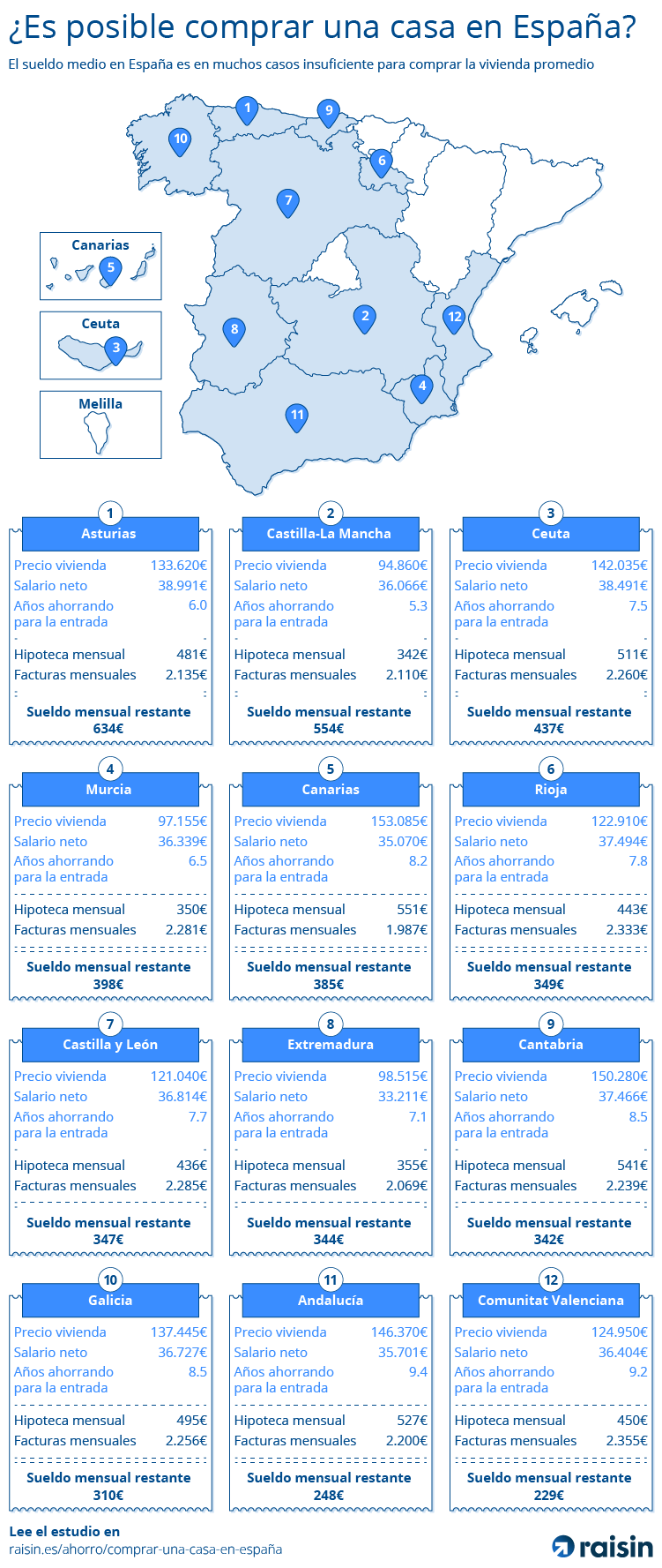 Según Raisin, fintech pionera del open banking, Madrid, Baleares, Cataluña y el País Vasco son inalcanzables para el acceso a la vivienda de una familia media.