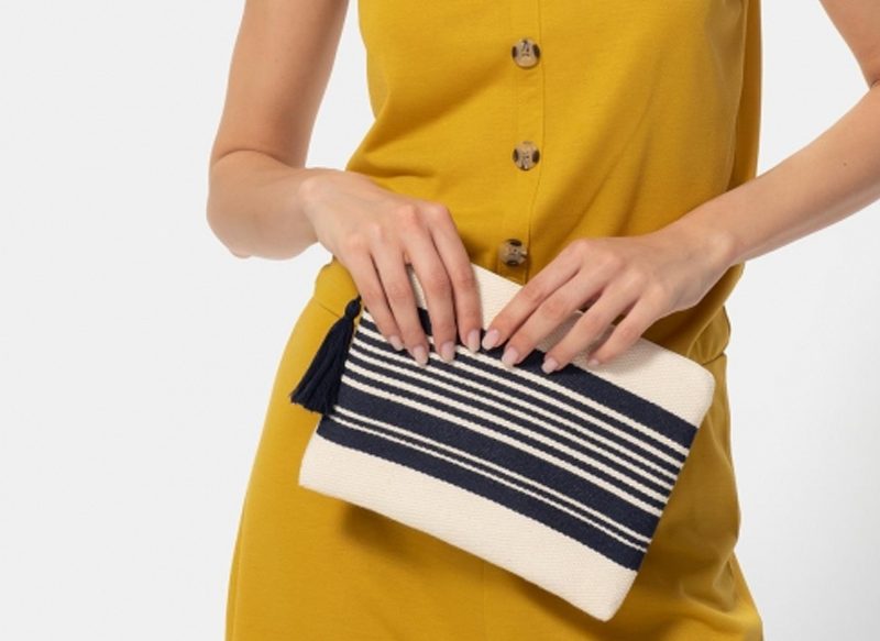 Entre los complementos ideales para tus looks veraniegos, o para cualquier otro momento del año está este bolso de mano para mujer TEX en color azul marino armada combinado con crudo.