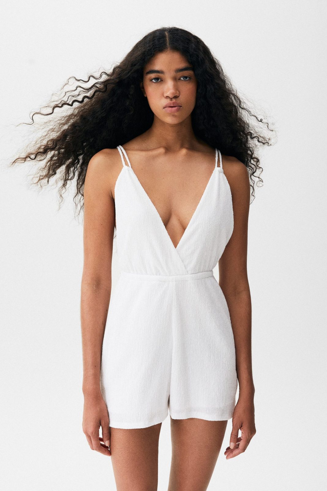 El color blanco es uno de los imprescindibles de cualquier temporada gracias a su capacidad para combinar con todo. En este caso, una de las prendas más llamativas de Pull&Bear es este bonito mono, corto y cruzado a la espalda, que destaca por su escote en pico y por detalles como su doble tirante. Asimismo, ahora lo puedes conseguir por tan solo 13,99 euros cuando antes costaba 19,99. Una gran oportunidad.