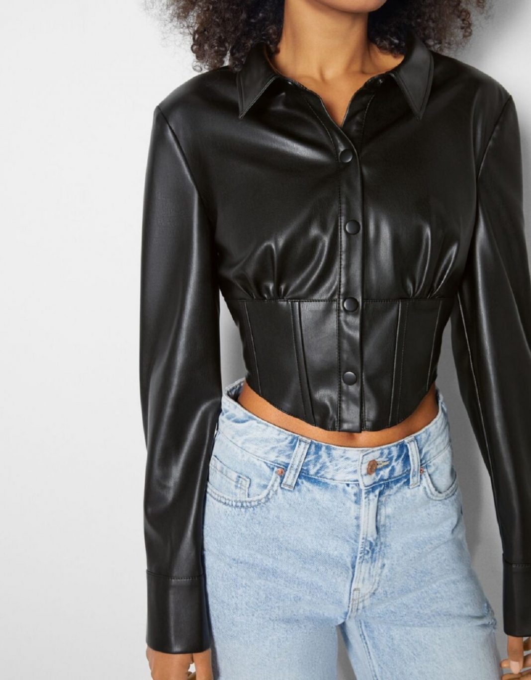 2Camisa corsé efecto piel de Bershka