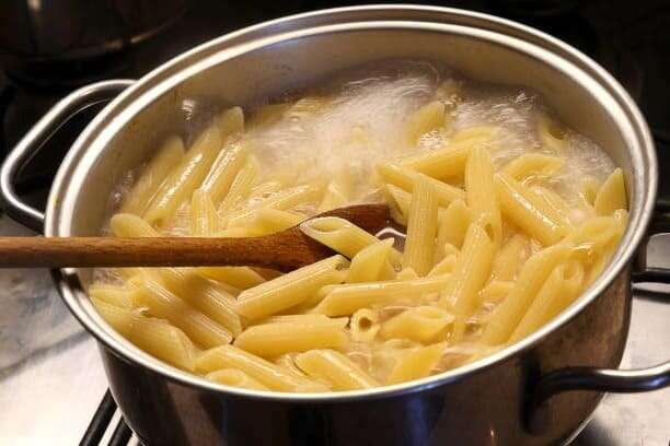 Mientras se cocina la salsa, tenemos el tiempo suficiente para preparar la pasta. Para ello, cogemos una cazuela con agua y la ponemos al fuego a temperatura alta. Un truco para que no se te queden pegados, es echarle un chorrito de aceite y un poco de sal para que cojan un poco de sabor. Una vez que el agua esté hirviendo, echamos los macarrones a la cazuela y dejamos que se cocinen durante 8 o 10 minutos. Si no estás seguro cuánto tiempo tienes que dejar la pasta, consulta las indicaciones del envase.