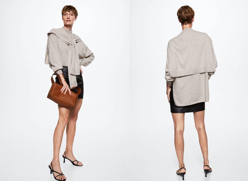 En Mango también está a la venta este jersey 100% cashmere capa en un color gris claro/pastel que lo hace encajar a la perfección en una amplia cantidad de looks. Se trata de una prenda muy versátil y fácil de combinar.