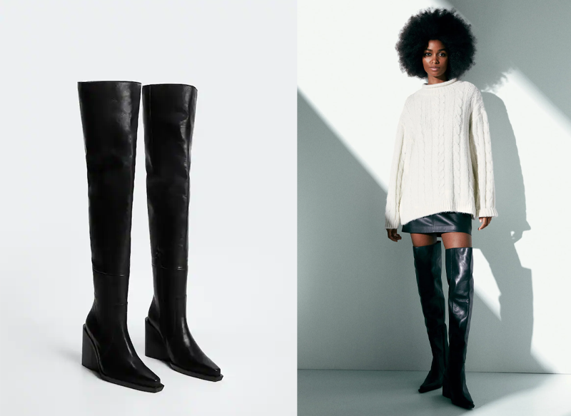 Con la llegada del entretiempo también regresa la tendencia de hacer uso de botas altas. Estas botas de piel de caña alta de Mango son una opción muy a tener en cuenta, un modelo que se vende en color negro por un precio de 199,99 euros.