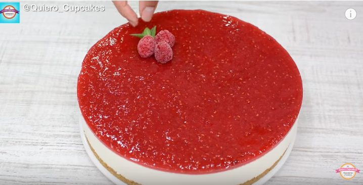 Si quieres puedes decorar la tarta de queso con un trozo de menta por encima y varias frambuesas secas. Son el toque mágico que cualquier repostero da a sus platos. Además, en este caso sin tener que usar horno.