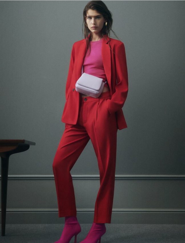 Y qué mejor que este pantalón de tiro alto para combinar con la blazer que acabamos de ver, haciéndolo coincidir en color. Es ideal tanto para lucir en oficina, ahora que volvemos a la rutina, como para ir elegante a una fiesta o evento. Es un pantalón con pinzas de tiro alto con largo tobillero. Está confeccionado en un tejido muy cómodo. Su precio es de tan solo 15,99 euros.