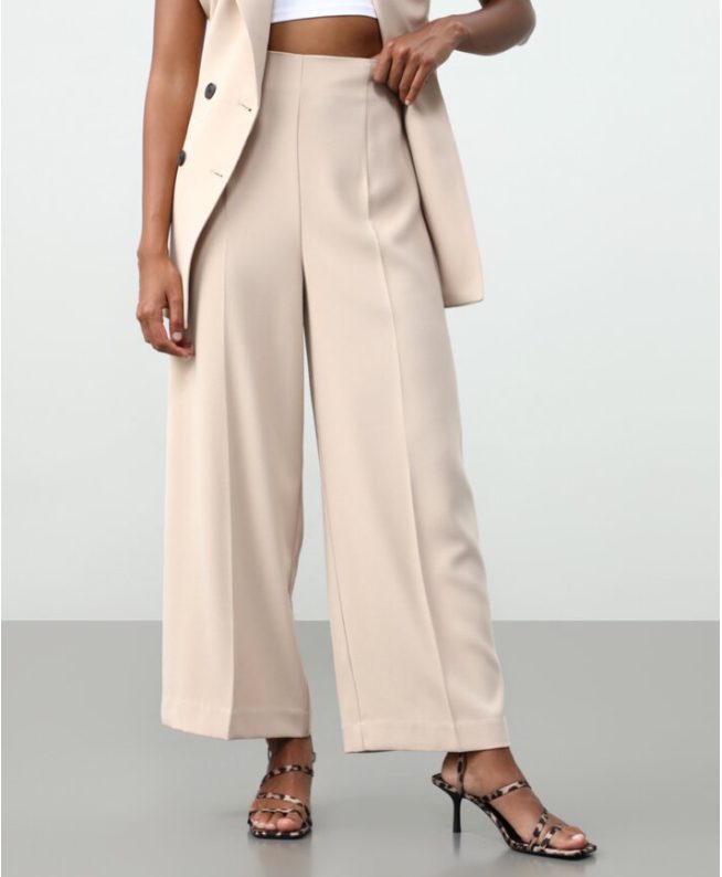 Seguimos con los pantalones, con un modelo igual de elegante, tanto para casual como para ocasiones especiales. También es tendencia el pantalón culotte con cierre lateral de cremallera invisible. Está confeccionado en un agradable y cómodo tejido. Lo tienes en tres colores: beige, lavanda y negro. El precio en Lefties es de 17,99 euros.