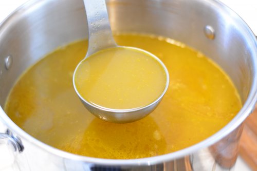Una vez hayas introducido todos los ingredientes en la olla baja el fuego y deja cocer a fuego lento durante al menos una hora y medio. Aunque es una receta muy fácil de preparar, lo cierto es que requiere de tiempo y paciencia, por eso lo mejor será hacer una gran cantidad y congelarla. Si, por el contrario, tienes una olla express, no necesitarás más de 20 o 30 minutos. Mientras se cuece tu caldo de pollo es decisivo que estés pendiente para ir espumando la superficie de vez en cuando, de lo contrario, te quedará un caldo amarillento y el resultado no será igual de bueno.