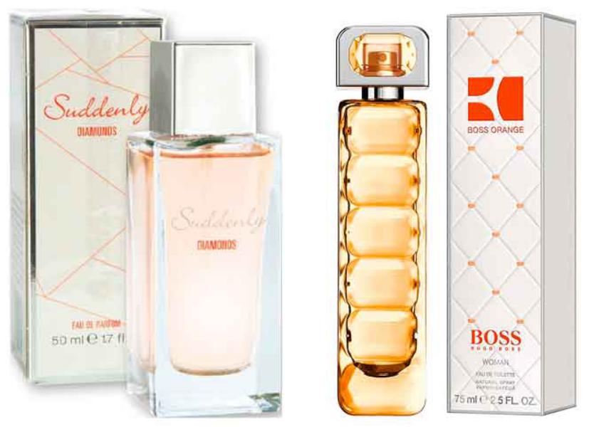 Otro clon que encontramos en Lidl es el Suddenly Diamonds que huele como el de Hugo Boss Orange, Es un perfume alegre y optimista. Con notas de salida alegres, dulces y afrutadas de manzana roja, que abren paso a un corazón repleto de feminidad y ternura gracias al bouquet floral suave que aportan las notas de flores blancas y flor del naranjo africano. En el fondo, el sándalo, olivo y vainilla aportan un toque cremoso, cálido y acaramelado. Suddenly Diamonds tiene un precio de 4,99 euros y contiene 50 ml, mientras que Hugo Boss Orange Woman ronda los 40 euros para 75 ml.