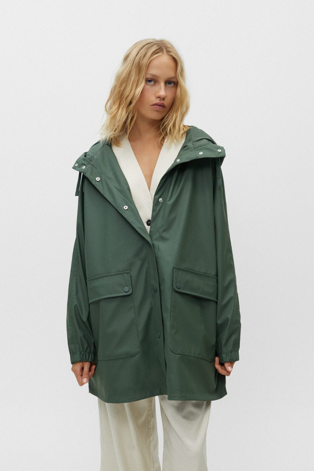 Otra de las prendas que, sin duda, se convertirán en uno de los éxitos de la temporada es este chubasquero con capucha y cordones ajustables, bolsillos delanteros, cierre con snaps y manga con goma elástica. Su precio es un poco más elevado que los anteriores, de 39,99 euros, aunque sigue siendo una de las opciones más competitivas que puedes encontrar en el mercado en este tipo de prendas. Puedes comprarlo en Pull&Bear tanto en tienda como online y está disponible tanto en verde como negro, lo que lo convierte en una prenda súper versátil ya que ambos colores combinan prácticamente con todo.