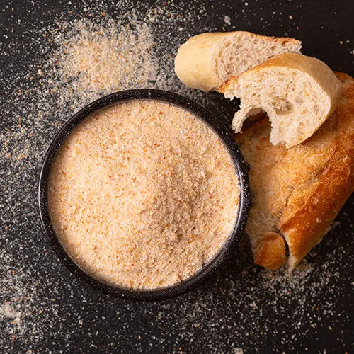 Después de aplanar nuestros filetes, vamos a preparar el resto de ingredientes. Para ello, cogemos dos o tres huevos y los pasamos a un plato hondo para batirlos hasta que no logramos diferenciar la yema de la clara. A continuación, en un plato llano añadimos una generosa cantidad de pan rallado. Mucha gente prefiere sazonar el pan rallado para lograr un rebozado con más sabor, así que si quieres puedes echar sal y pimienta a lo que va a ser el rebozado de nuestro cachopo.