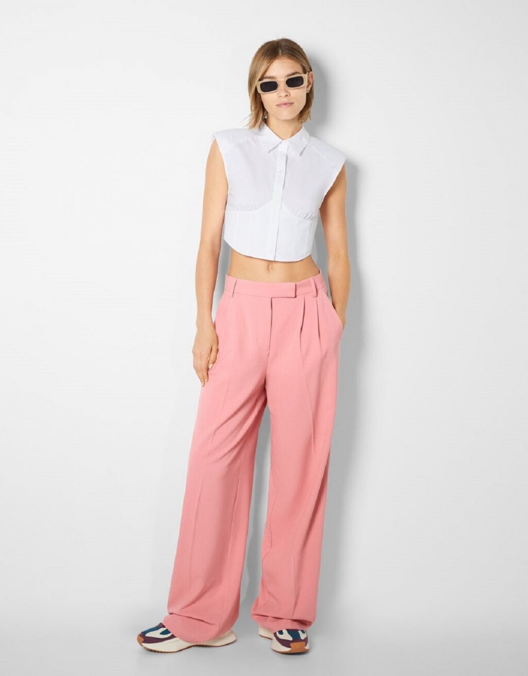 Siguiendo en la misma línea, está el pantalón tailoring wide leg dad fit. Una prenda de lo más cómoda que te servirá para ir algo más formalita o casual, depende de con qué lo combines. Como habrás observado, la mayoría de modelos aparecen enseñando el ombligo, otra tendencia que vuelve. Durante el verano, pareciera que las famosas se obsesionaron con mostrar el ombligo y parece que hasta que esté entrando bien el invierno, esta moda no cambiará. Dato que no deberías pasar por alto: Madonna fue la primera en enseñar el ombligo en público.