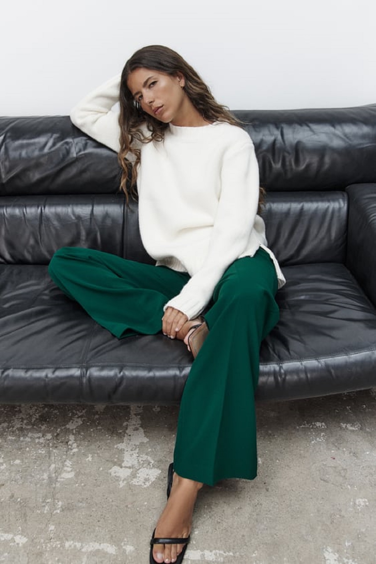 El famoso “que todo fluya, que nada influya” está impreso en la esencia de este exquisito diseño de Zara. Un pantalón que se encuentra en verde y crudo que te hará lucir elegante, al mismo tiempo que cómoda. El tiempo de los pantalones pegados para estilizar silueta ya se acabaron. Esta apuesta de la firma de Inditex permite que todas nos sintamos cómodas con el mismo bosquejo. Si lo que buscas son aplausos, esta es la vestimenta adecuada.