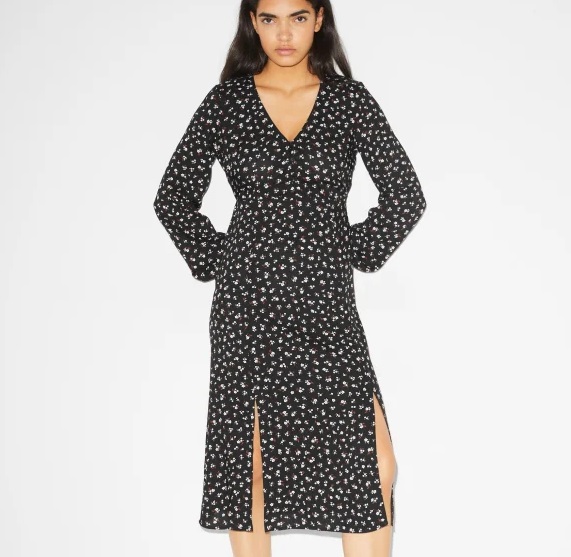 Su estampado va un poco en la línea del modelo anterior, pero tiene algunas diferencias. Primero, su precio, que es de 25,99 euros. Luego es importante igualmente señalar que tiene manga larga, debido a lo cual es todavía más perfecto para este final de verano y principio de otoño. Por lo demás, tiene botones, y un corte que podría considerarse bastante clásicos, como otros lanzamientos similares.