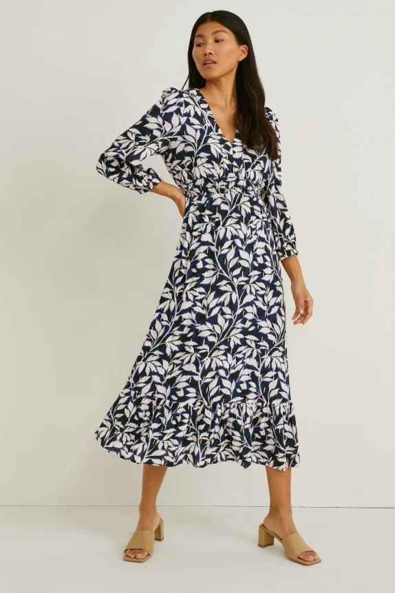 Como comentábamos, C&A ofrecer una considerable variedad de vestidos, de todos los diseños, estilos y precios. En este caso es un vestido ajustado con estampado de flores, de color tradicional blanco y negro, y que se ha puesto a la venta por 49,99 euros.