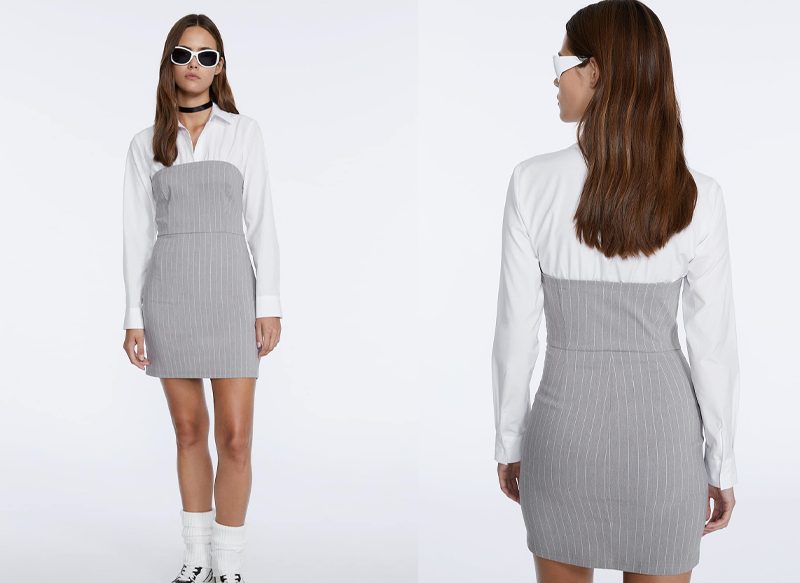 El elegante vestido de Stradivarius con el que conseguirás sorprender a todo el mundo en cualquier evento o celebración es este vestido corto bimateria raya diplomática. Es un modelo muy interesante que puedes combinar de distintas maneras.