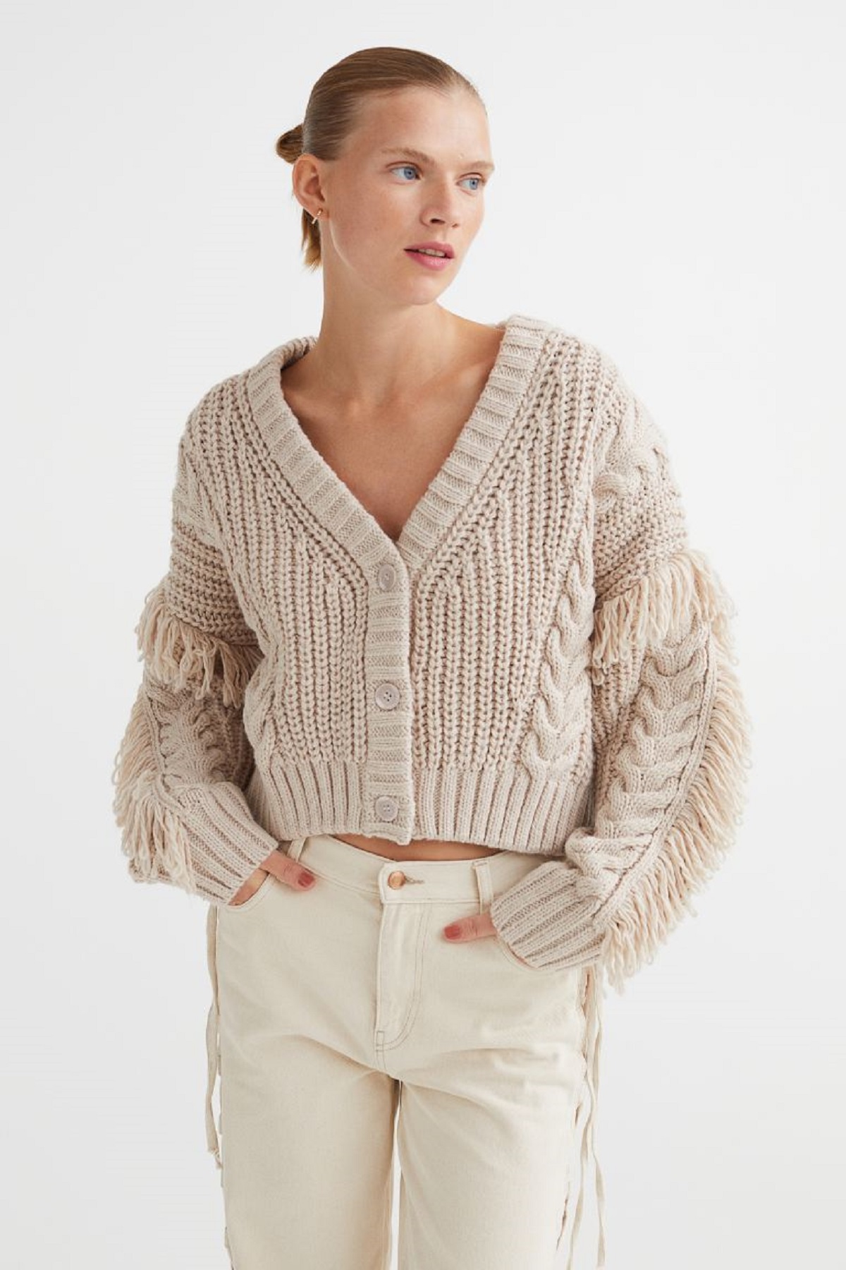 Un diseño de escándalo que derrocha personalidad lo mires por donde lo mires. Disponible en beige, puedes utilizarlo abierto y cerrado. En otoño, sirve para llevarlo como chaqueta y en invierno para refugiarte del frío. Sin duda, los flecos son el toque maestro que nos vuelve locas. Aunque el detalle trenzado tampoco nos deja indiferentes. ¡Impresionante!