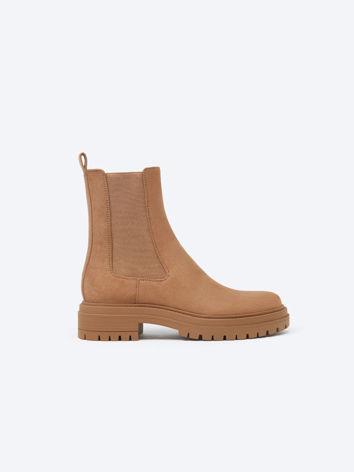 Otra de las mejores propuestas que puedes encontrar en el catálogo de otoño de Lefties son estos botines estilo Chelsea con detalle elástico en la parte lateral, suela track y tirador trasero para facilitar el calce. Puedes encontrarlos en varios colores por solo 29,99 euros. No solo son una de las opciones más versátiles de esta lista, que combinan con prácticamente todo lo que te pongas, sino que además son también una de las más cómodas, gracias a que su suela plana con una altura de 4,5 centímetros te aislará completamente del suelo.