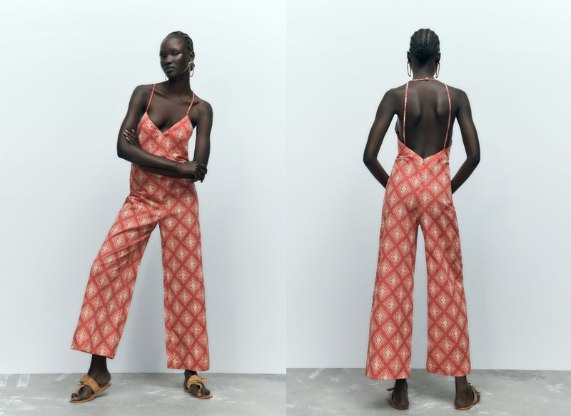 Para las amantes de los modelos más llamativos y llenos de color, este mono largo estampado de Zara es una opción muy a tener en cuenta. De acabado en color terracota y estampado, es una prenda disponible por 35,95 euros.