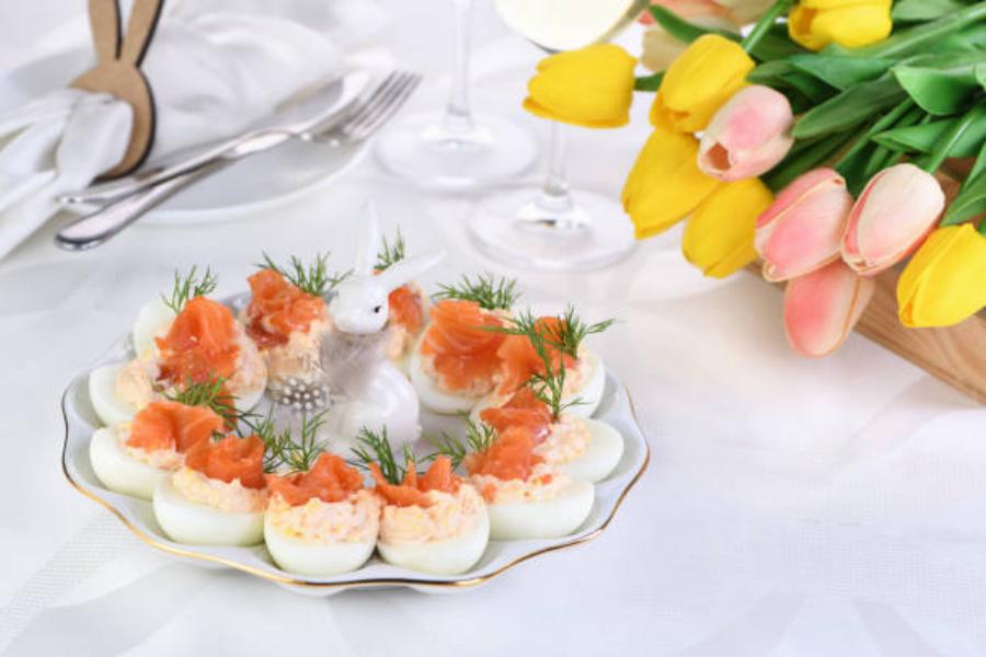 Los huevos rellenos son fáciles de preparar que los puedes tener hechos con antelación. Sirven para una cena de verano o almuerzo, pero esta receta clásica de la gastronomía española, es una buena propuesta para un entrante navideño. Este relleno de salmón y atún, le dan un plus festivo. El secreto para que queden perfectos es que el relleno quede bien cremoso y que los huevos estén en su punto exacto de cocción, entre 10 y 12 minutos. Si te pasas de tiempo, la yema quedará verdosa y muy seca, por lo que afectará a la cremosidad del relleno. A continuación, todos los pasos de este entrante perfecto.