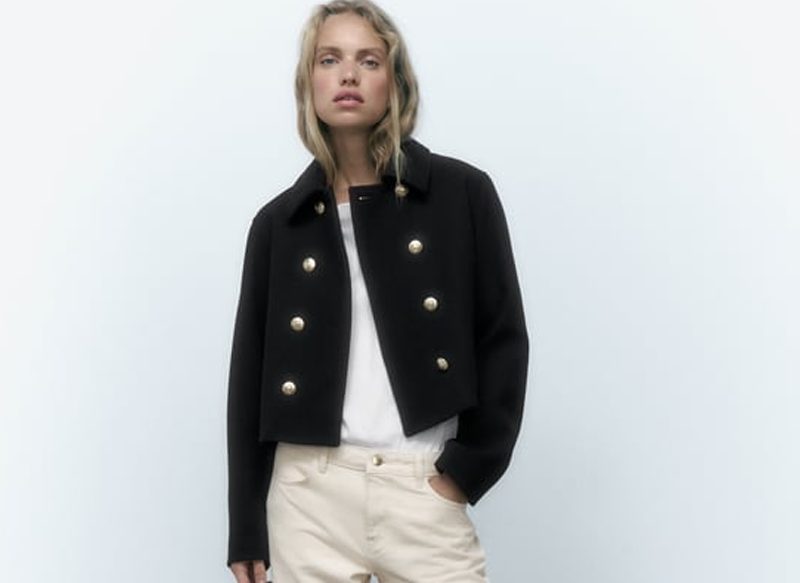 Esta chaqueta cropped botones dorados de Zara es una prenda muy versátil que ofrece muchas posibilidades a la hora de combinarla para conseguir el outfit ideal. Está disponible en tallas XS a XXL por un precio de 35,95 euros.