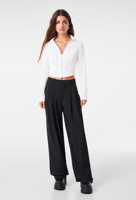 ¿Cómo podemos modernizar un diseño tan clásico como el de las camisas? Pues Bershka lo ha conseguido añadiendo algo tan sencillo como una cremallera. La camisa manga larga ajustada popelín cremallera está disponible en la página web y en los establecimientos de la tienda por el módico precio de 16,09 euros, gracias a su rebaja del 30%. No solo tiene una cremallera como cierre, sino que tiene un escote en forma de pico, un largo por encima del ombligo y unas mangas largas ajustadas que perfila la silueta. A continuación, te vamos a enseñar otras camisas que tiene Bershka en su colección.