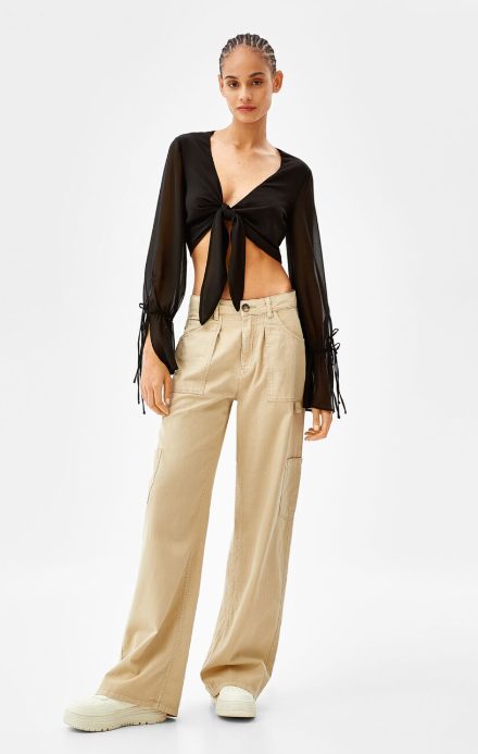 Puede que el verano haya llegado a su ocaso, pero eso no quiere decir que tengamos que meter todas las prendas del estío en una caja hasta la temporada que viene. Y la prueba de ello son las blusas, que les podemos dar una segunda vida durante el otoño y aprovechar al máximo los últimos rayos de sol. La blusa manga larga lazos chifón nudo está disponible en la tienda online de la marca y en las tiendas físicas por el módico precio de 19,99 euros, una verdadera ganga que no podemos dejar pasar.