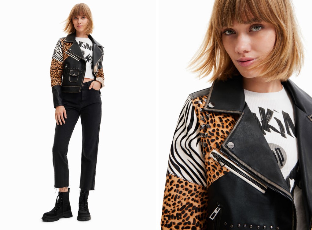 El estilo urbano es uno de los más demandados en los looks de street style. Si quieres destacar por encima del resto, esta chaqueta de Desigual debe encontrarse en tu vestidor. Se trata de una biker de color negro que llama la atención gracias a su estampado de animal print. Un bonito diseño que puedes conseguir por 249,95 euros.