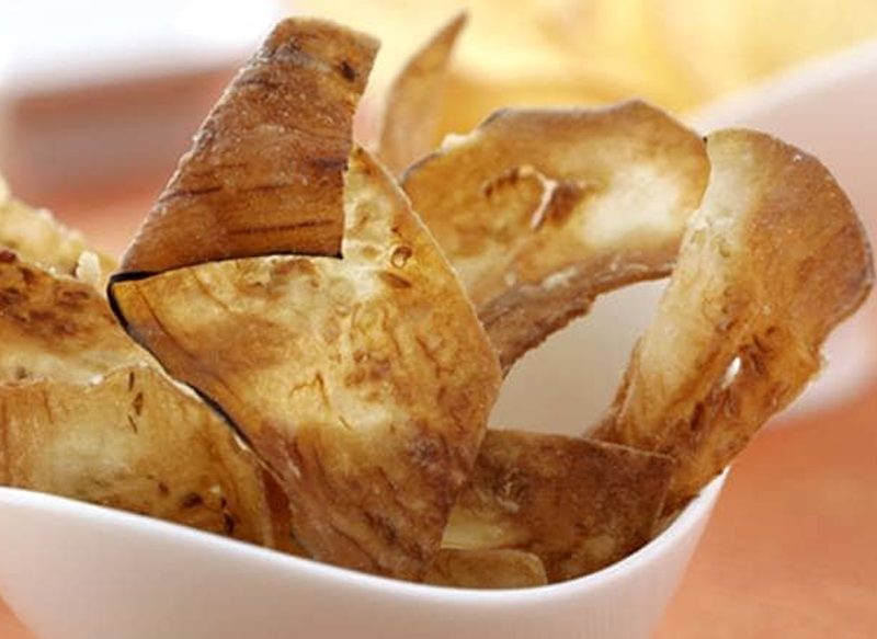 La berenjena es un alimento que tiene numerosas ventajas para nuestra salud y que podemos consumir de maneras muy diversas, ya sea en forma de milanesas, de tortilla… o en formato de chips, una opción ideal para acompañar a nuestros platos principales.