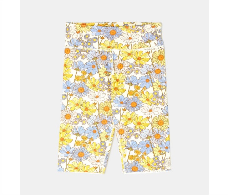 Precioso leggin corto de color azul con estampado de margaritas amarillas, ideal para llevar al gym o para tus paseos deportivos. La cintura es elástica muy cómoda sin botones ni cremalleras, para que puedas hacer cualquier ejercicio sin que te moleste nada.